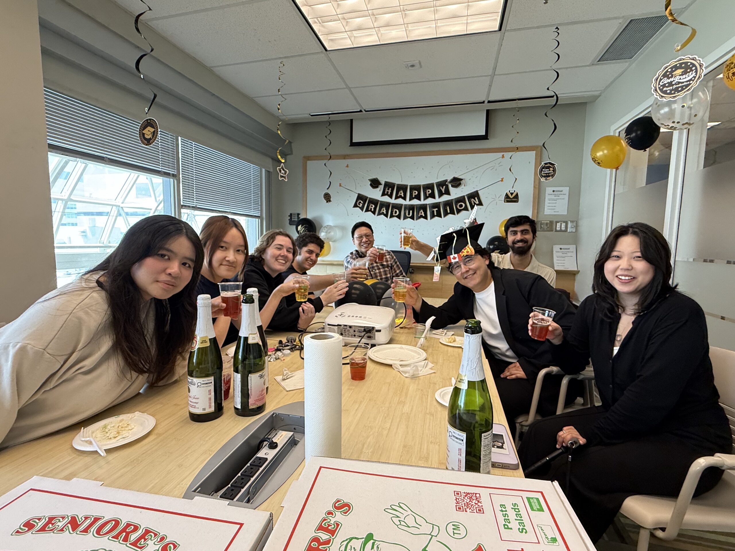 Lab lunch out—thank you!!! Eve and Selina, for your hard work in the lab to complete the 4th-year thesis projects! And welcome—Maggie and Monica to start summer research projects in the lab!!!